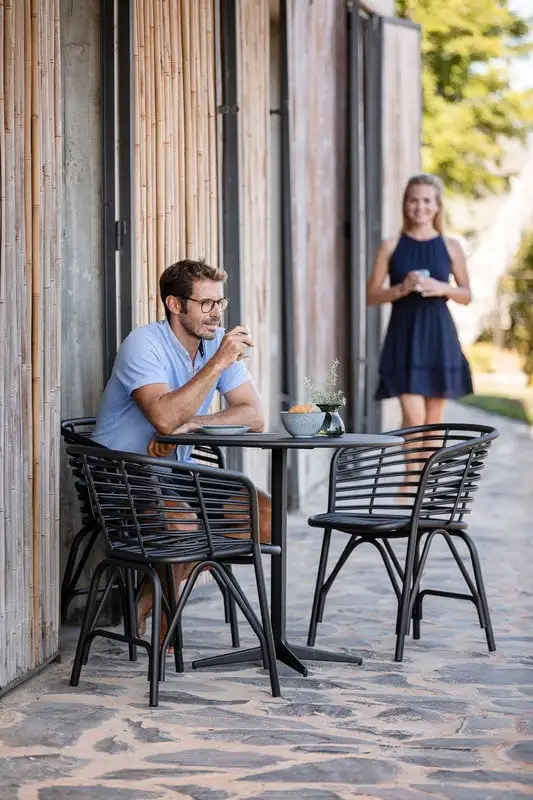 The Cane-line Blend outdoor chair makes a sophisticated addition to the décor of your patio, garden or summer house. Designed by Foersom & Hiort-Lorenzen, the chair resembles rattan furniture or other traditional garden chairs – however, it is actually made of durable, easy-care aluminium. As a result, the patio chair boasts a modern and distinctive design that, at the same time, looks remotely familiar. In addition to outdoor spaces, the Blend chair is also ideal for use indoors, and if desired, you can also make it extra comfy with a seat cushion that is available separately.