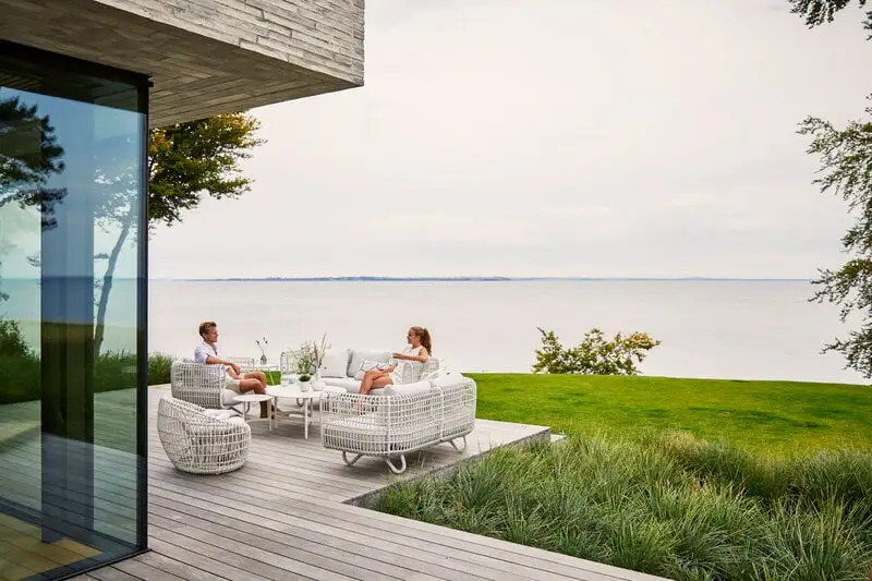 Cane-line’s Nest outdoor sofa is a fine example of Danish design. Designed by Foersom & Hiort-Lorenzen, the 3-seater sofa is made of aluminium and Cane-line Weave and completed with cushions especially designed for outdoor use. Cane-line Weave is a fibre made of dyed and hard-wearing polyethylene. The material is ideal for outdoor use as it is highly weather-resistant and maintains its colours and shape for years on end. Create a gorgeous sofa set for your patio or garden by combining the Nest sofa with the matching Nest lounge chairs.