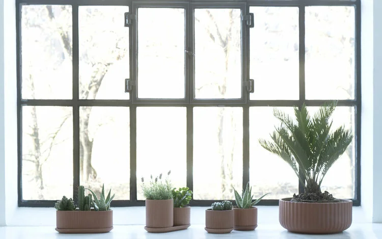 Elementa’s Klorofyll flowerpot set provides an elegant setting for a variety of green plants. The pots, made of terracotta, are equipped with a saucer that holds both planters.