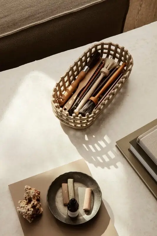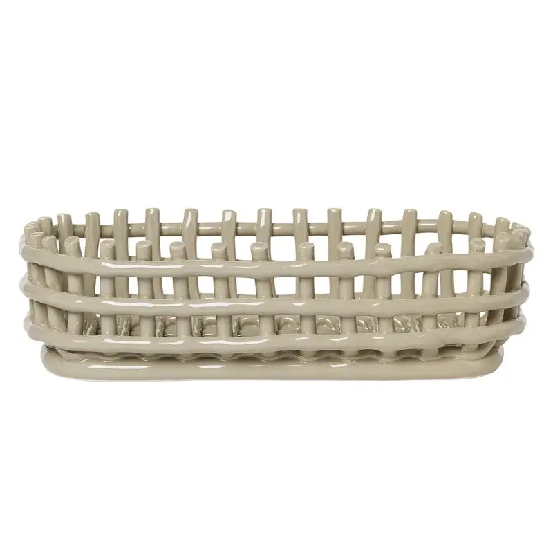 ferm LIVING’s Ceramic basket combines pottery and traditional basket weaving, creating a fun and surprising modern basket. The versatile Ceramic basket can be used for table setting, storage or seving fruits. The fun, eye-catching design also works well as an interesting stand-alone piece.