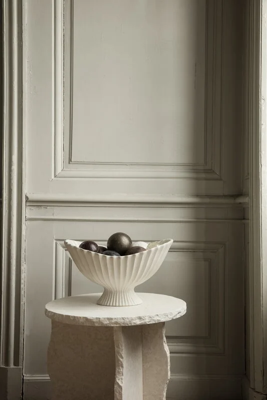 ferm LIVING’s Fountain is a centerpiece that catches the attention with its sculptural but soft-lined appearance. The elevated bowl is inspired by the shape of classic fountains and has a beautiful, pleated texture on its surface. The unique ceramic bowl is suitable as a decorative eye-catcher as such, but it can be filled with floral decorations, for example. In addition, the centerpiece is a great addition to a table setting or for storing small items. The Fountain has a matte exterior but is glazed on the inside.