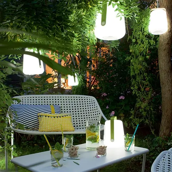 Fermob’s Balad is a fun and versatile light that can be used both indoors and outdoors. With its white streamlined shade and simple handle, the light resembles a pleasant, contemporary lantern. Balad is easy to carry from one place to another since the rechargeable LED technology makes it cordless. The battery lasts up to 16 hours with one charge. Balad lights up any setting with its white light and vibrant colours and makes a great lamp for terraces, gardens and summer cottages.