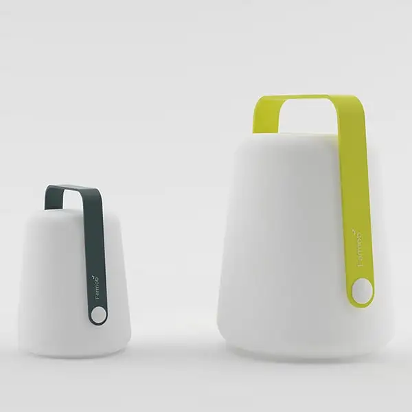 Balad H38 lamp by Fermob can be placed on the garden table, tree branch or inside the house. The cordless table lamp has two different lighting intensities and three colour temperatures. Combined with the separately sold upright stand, Balad will turn into a stylish floor lamp.