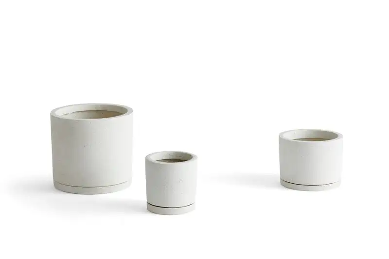 HAY’s Plant Pots add a minimalist, industrial touch to your home, garden or balcony. Made of polystone, an innovative material that combines the porous feel of concrete with plastic-like lightness, Plant Pots can be used both indoors and outdoors. If you use them as outdoor planters, it is a good idea to take them inside during winter when it’s particularly chilly. Plant Pots come with matching saucers.