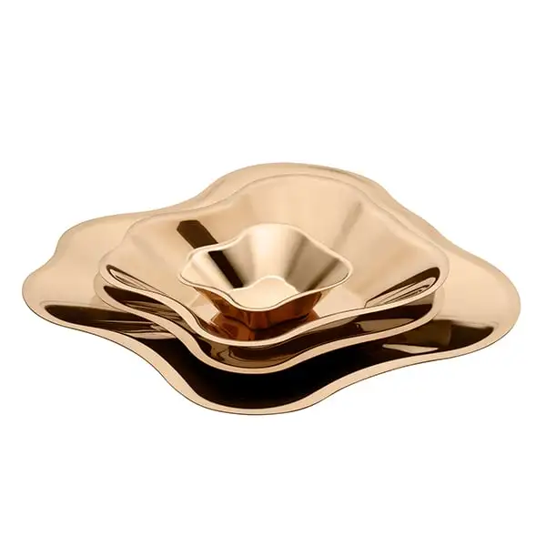 The rose gold version of Iittala’s Aalto bowl brings new, warm shine to home decor and table settings. The bowl is an eye-catcher that matches attractively with different wooden or metal surfaces. Aalto bowl follows the iconic form of Alvar Aalto’s Savoy vase – it is a beautiful decorative object and suitable for serving fruits and snacks.