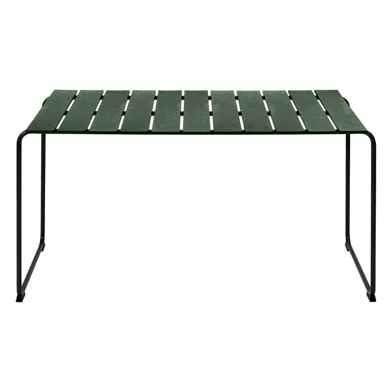 The Ocean OC2 garden table by Danish brand Mater is a part of its award-winning Ocean collection – a reinterpretation of the outdoor furniture range designed by Nanna & Jørgen Ditzel in 1955. Besides the exceptionally harmonious form, the materials also make the Ocean OC2 range very unique: the collection has been made using recycled plastic beer kegs in collaboration with Danish beer manufacturer Carlsberg. The seats and tabletops are formed by strong plastic slats, featuring the familiar dark green hue, and the airy design is complemented by a metal frame with a gunmetal finish. All the components are recyclable.