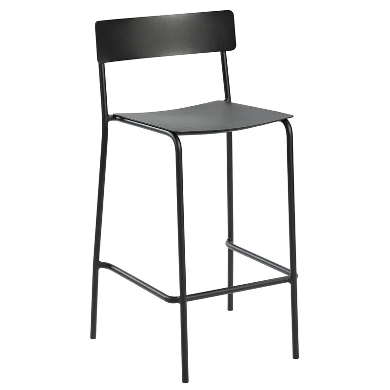 The August bar stool by Serax is made of powder-coated aluminium, and it is suitable for both indoor and outdoor use. The bar chair is just as at home out in the garden or on the patio as it is next to a dining table or desk indoors.