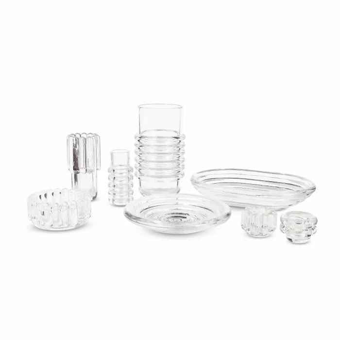 Tom Dixon’s Press bowl is a charming multi-purpose vessel that can be used as a fruit bowl for everyday life, as a serving dish for dinner parties – or even as an elegant chip bowl for a movie night! The beautiful clear bowl also finds a place outside the kitchen: the most important small items in the bedroom or hallway can be stored in style inside the thick glass edges of the bowl.